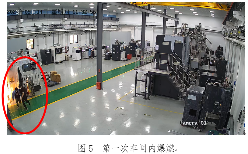 11时32分,滤筒除尘器发生第一次爆燃。作业人员立即灭火,爆燃未进一步扩散。