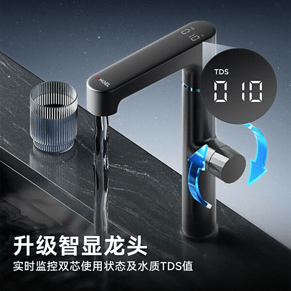 再说说它的制水能力,1200G大通量,冲水速度确实快,官方数据是2.46秒一杯水!还有那个智能水龙头,能实时显示TDS值,水质好不好,一眼就能看到,心里更有数。